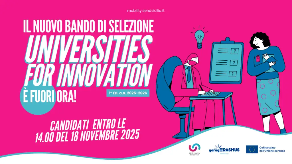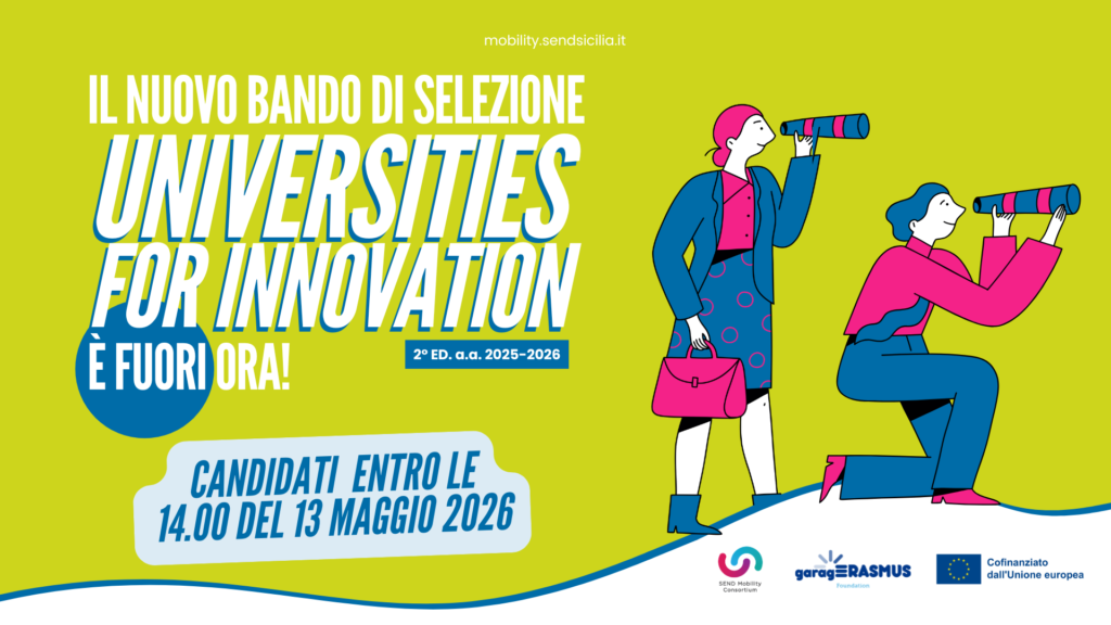 Pubblicato il bando di selezione del progetto “UNIVERSITIES FOR INNOVATION” per l’assegnazione di n. 60 borse di mobilità per tirocinio promosse dal Consorzio SEND! Scadenza il 13 maggio 2026 h.14.